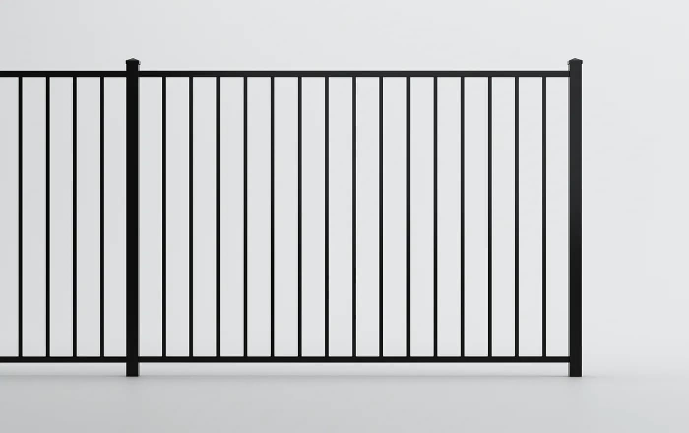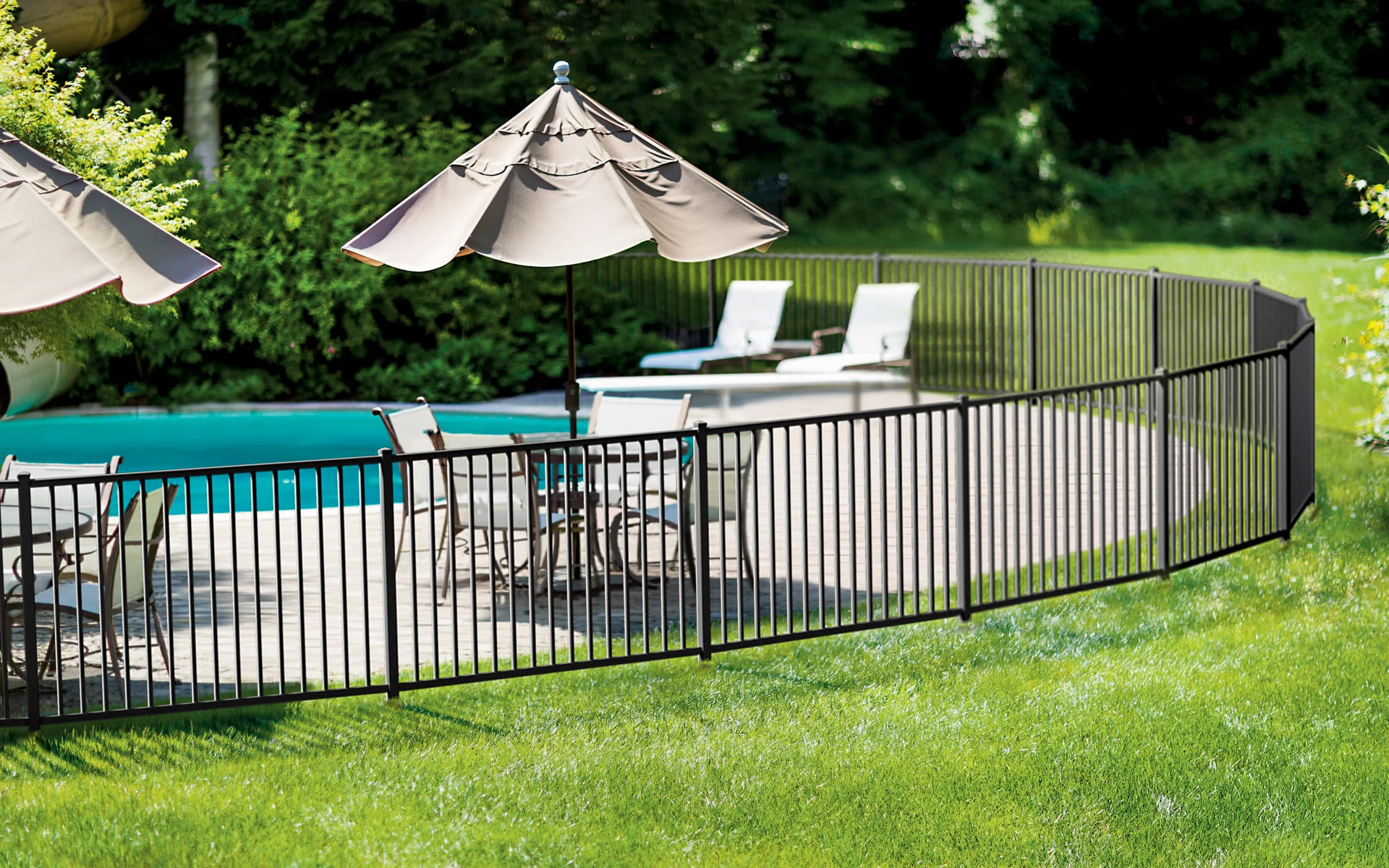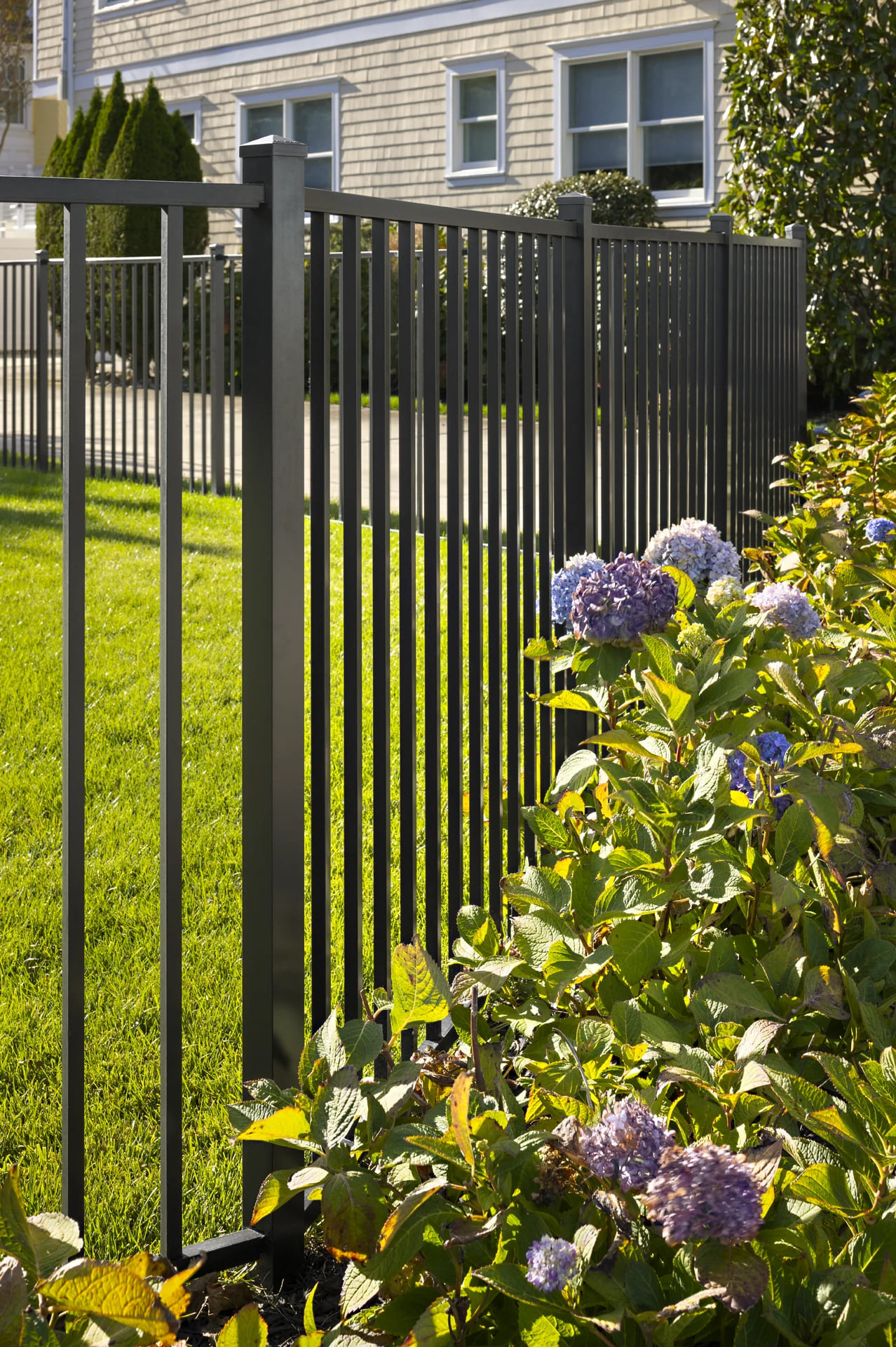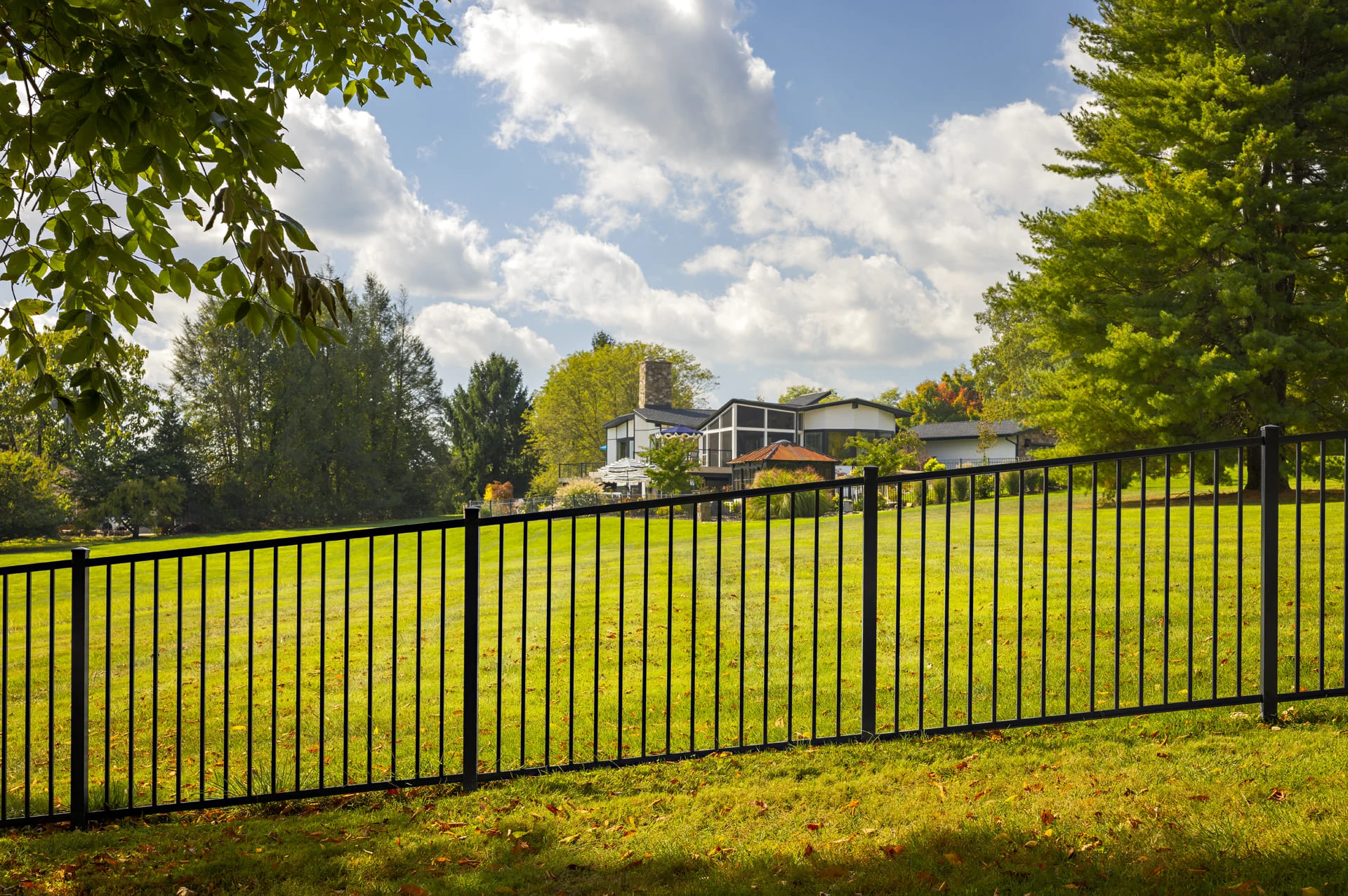 Modern aluminum fencing with a clear view — Cannon offers a sleek, flush-bottom design that complements both flat and sloping landscapes. Optional puppy pickets provide added safety around pools and play areas, without blocking your view.