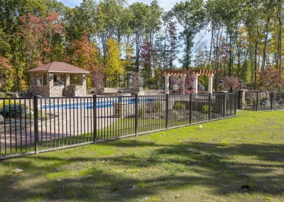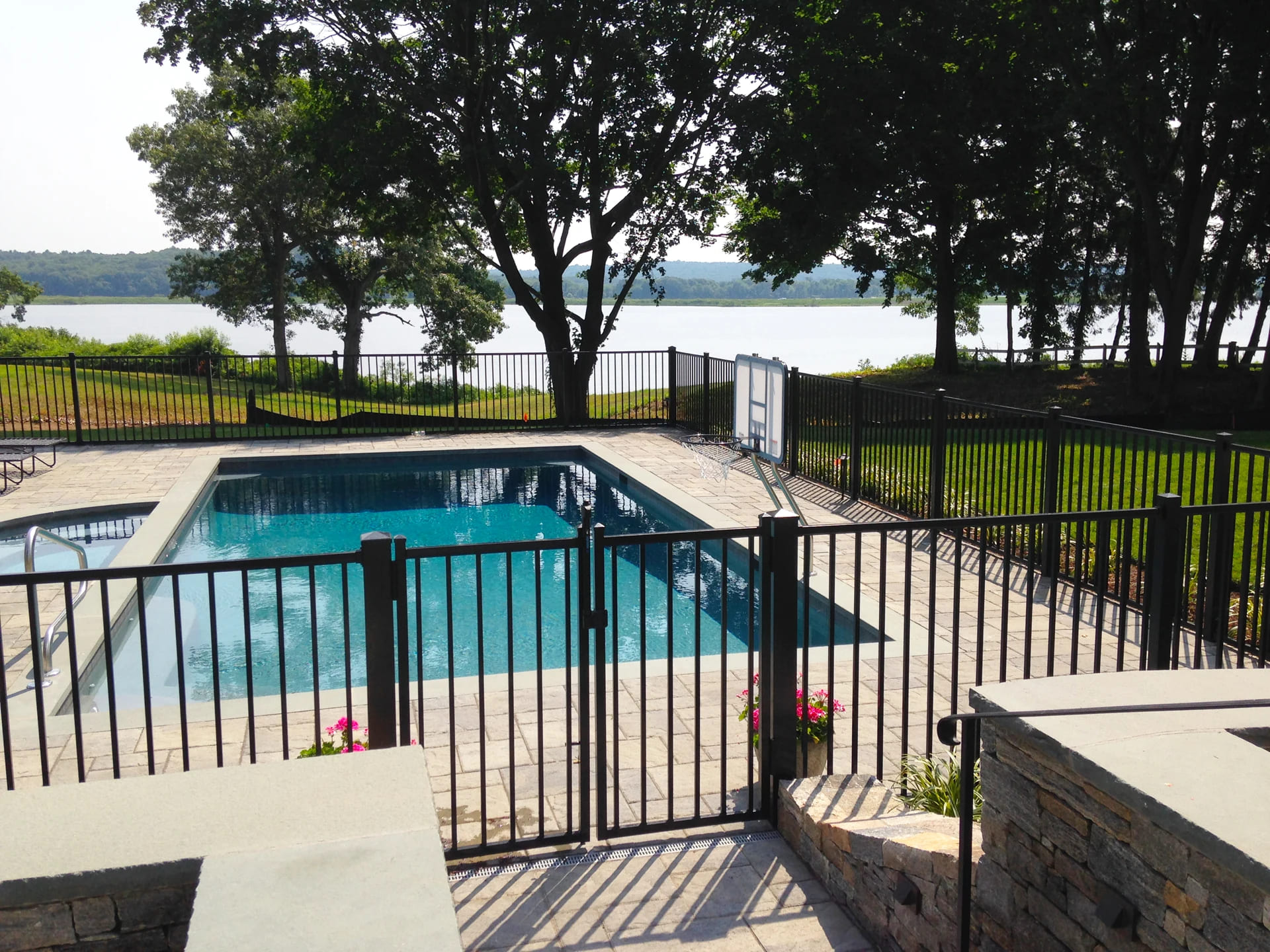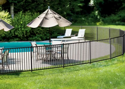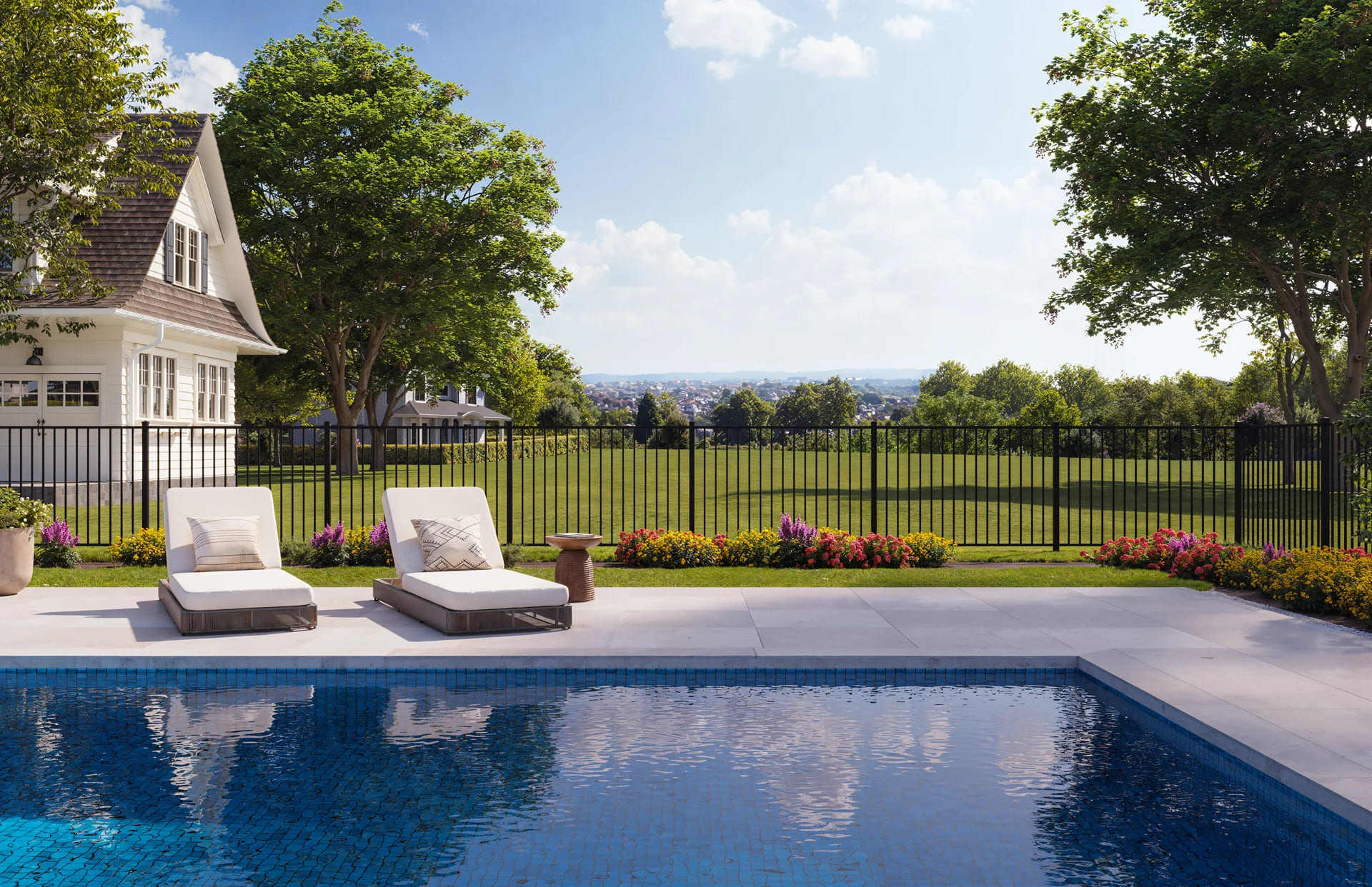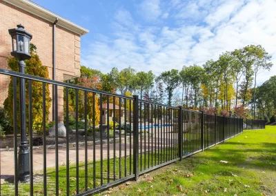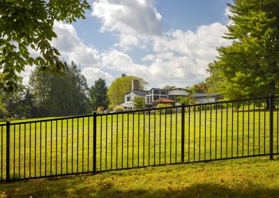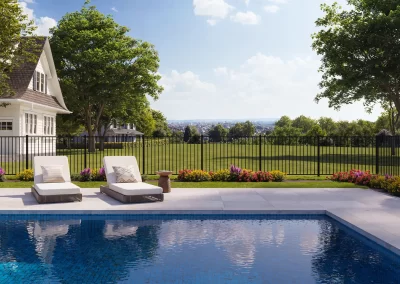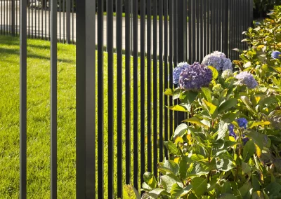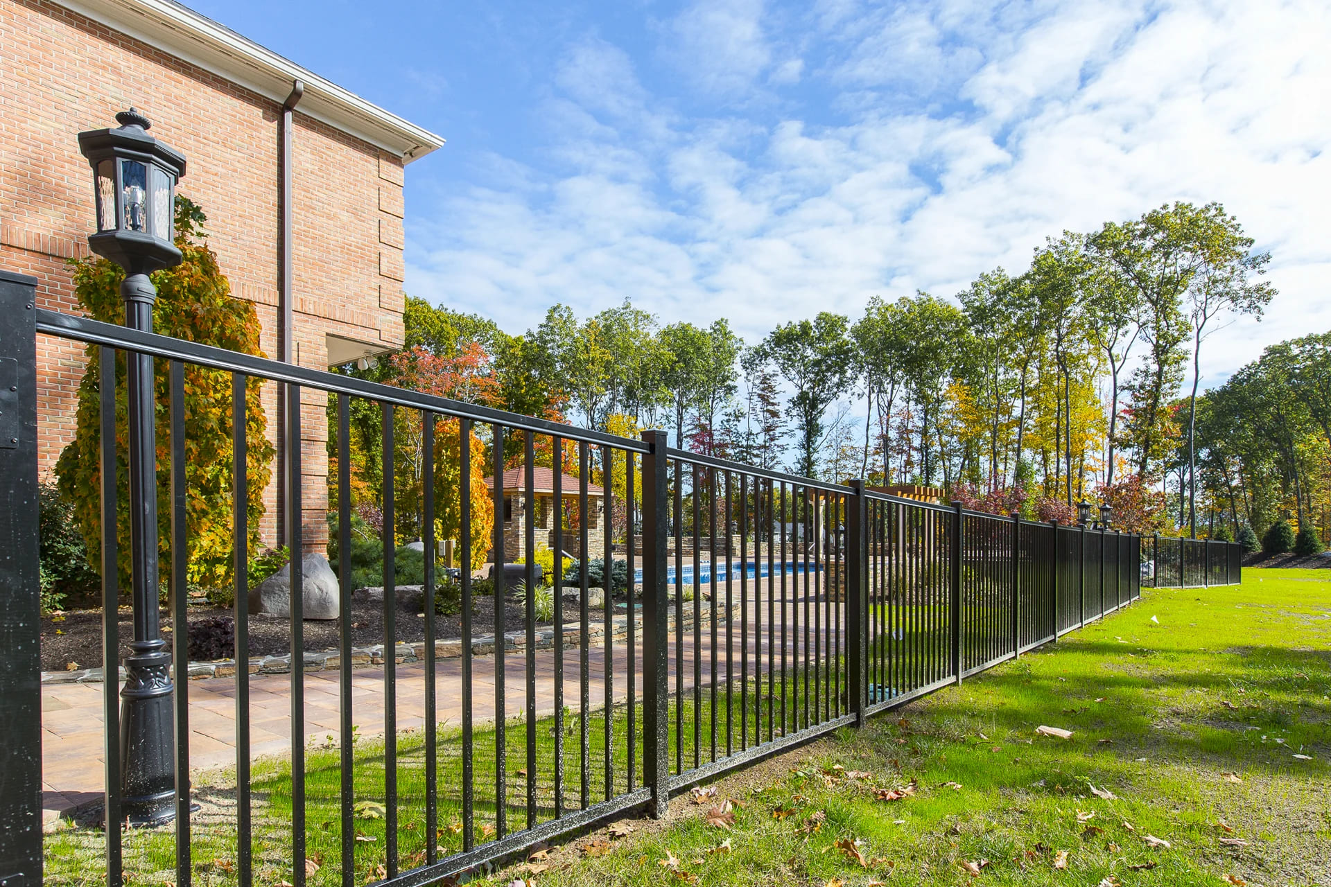 Modern aluminum fencing with a clear view — Cannon offers a sleek, flush-bottom design that complements both flat and sloping landscapes. Optional puppy pickets provide added safety around pools and play areas, without blocking your view.