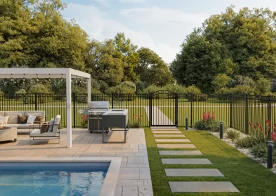 Built for reliability and flexibility, the Manchester flat top aluminum profile features multiple picket spacing, height, and finish options to meet both pool and wind code standards. Its optional puppy picket makes it a smart choice for families with children and pets.