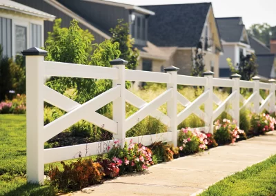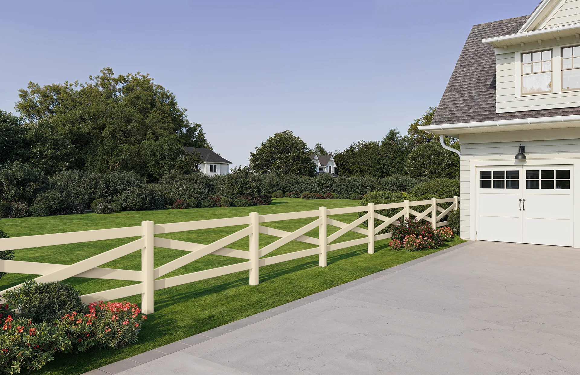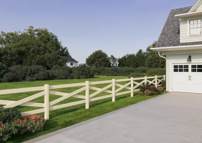 Timeless crossbuck ranch rail — Sedona brings classic charm to family ranches and farms across the country. Built with low-maintenance materials, a rigid framework, and a non-yellowing white finish, it stays bright and upright for years while preserving a refined, rustic look.