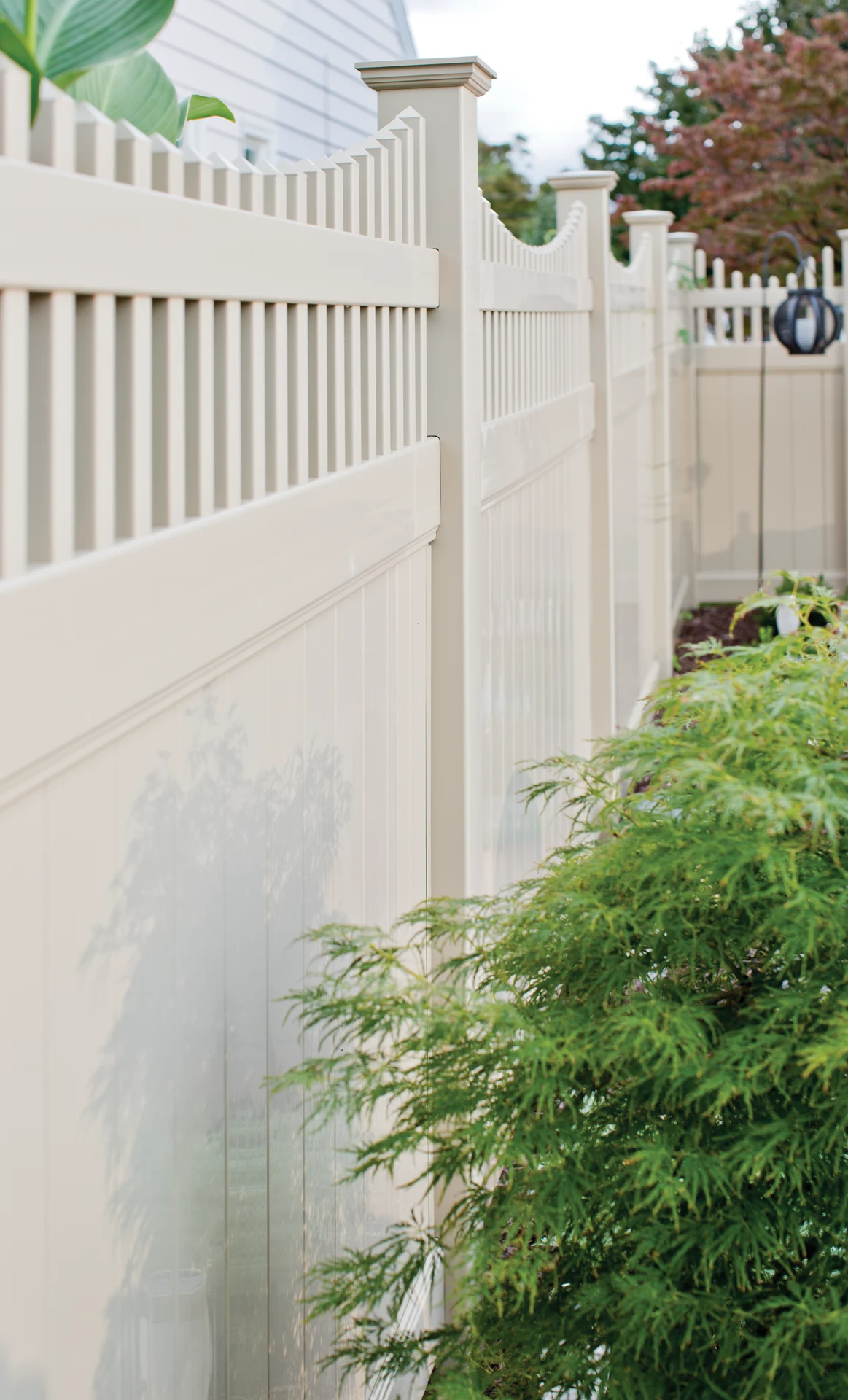 The Somerset fence combines charm and durability, inspired by the quaint scalloped trims of historic rooftops and porches. With four smooth colors and multiple height options, it offers a custom look with timeless appeal.